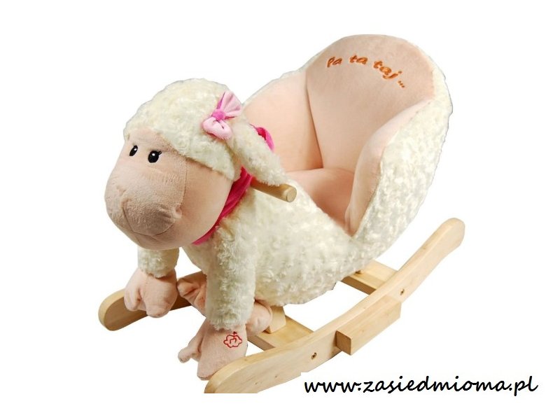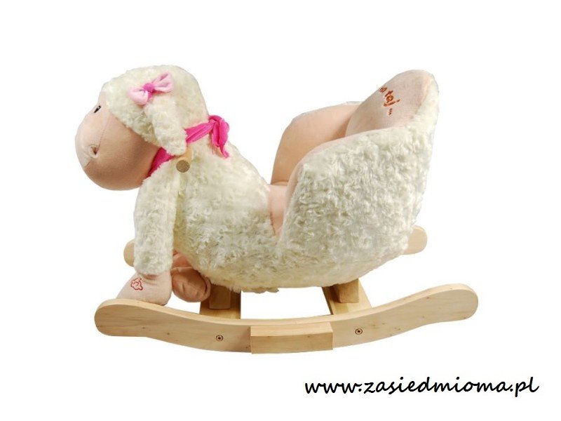 W środkowej części płóz zastosowano dodatkowe drewniane elementy podpórki, które powodują, że dziecko może na nich z łatwością postawić stopy - na cienkich płozach mogłoby być mu trudno i niezbyt bezpiecznie. Dodatkowo po naciśnięciu, owieczka będzie grać, co będzie stanowić dodatkową atrakcję dla dziecka.
