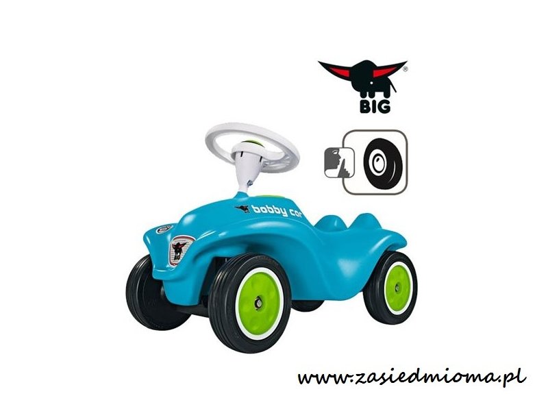 Ergonomiczny, solidny i efektowny BIG Jeździk w kolorze niebieskim. Cichobieżne koła, bezpieczna kierownica z klaksonem, uchwyty holowniczy z przodu i hak do przyczepy z tyłu.