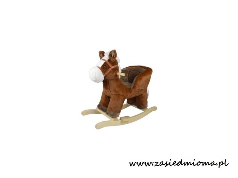 Konik wykonany jest z mięciutkiego i delikatnego w dotyku pluszowego materiału. Płozy i uchwyty na rączki wykonano z drewna. Całość utrzymana w tradycyjnej brązowej kolorystyce. Tylko grzywa i ogon w kontrastowym białym kolorze. Pyszczek konia zdobi tzw. latarnia, czyli jasne futerko.
