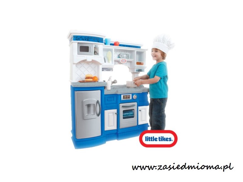 Kuchnię wyposażono w piekarnik, lodówkę, mikrofalówkę - wszystkie sprzęty posiadają otwierane drzwiczki. W szafkach i na półeczkach znajdą swoje miejsce garnki, naczynia i produkty spożywcze. Kuchnia posiada uchwyty do szafek, zlewozmywak, palnik gazowy, blat kuchenny na dwóch wysokościach, suszarka do naczyń, półka z koszyczkiem na pieczywo, półka na radio lub inny sprzęt, czy klikające pokrętła.