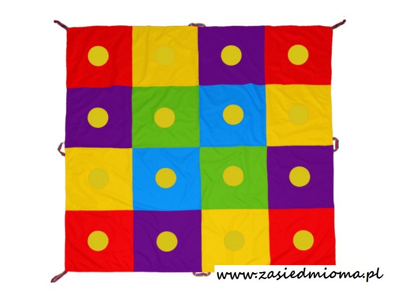 Mata Edukacyjna składa się z 16 kolorowych kwadratów 50 cm x 50 cm, dodatkowo na każdym klinie znajduje się rzep