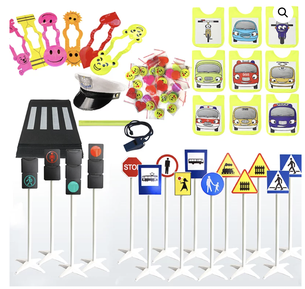 Zestaw miasteczka dla przedszkolaka w skład, którego wchodzą: