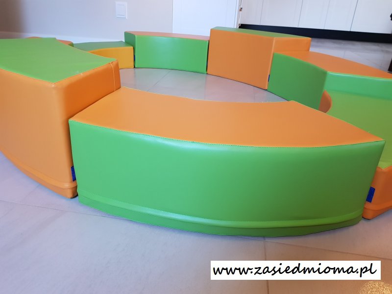 Wnętrze wykonane z wysoko ubitej pianki (23 kg/m3), co pozwala bezpiecznie utrzymywać równowagę w zabawie. Materiał obiciowy jest łatwy w utrzymaniu czystości (do umycia wodą z mydłem).