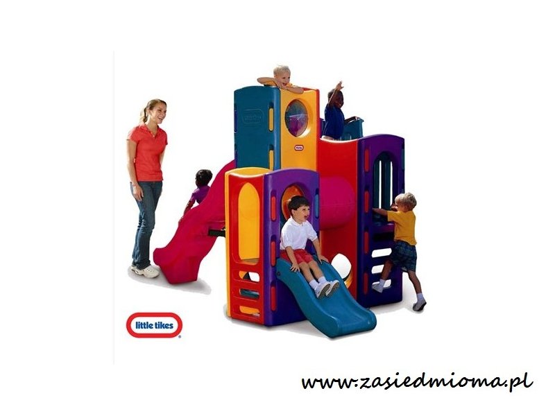 Little Tikes Olbrzymi Plac zabaw, wspinaczka, zjeżdżalnie, tunel. Posiada wszystko czego potrzeba dzieciom do szczęścia. Zabawa może odbywać się na 4 różnych poziomach. Najwyższy poziom wyposażony jest w duże okno, przez które można podglądać inne, bawiące się dzieci. Zestaw wyposażony jest w dwie faliste zjeżdżalnie o długości 82 i 180 cm.