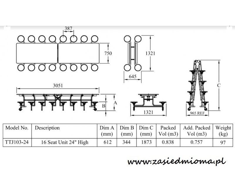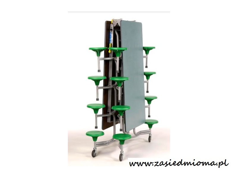 Stoły z zamontowanymi siedzeniami eliminują hałas przesuwanych krzeseł. Zamocowane siedzenia powodują, że podłogi zachowują swoje piękno na dłużej. Stół jest bardzo łatwy w obsłudze. Łatwy do złożenia i składania z dodatkowymi stołami tak aby zapewnić kompaktowe ich przechowywanie.