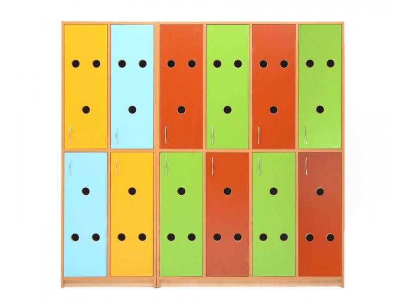 Szatnia kolorowe fronty. Fronty z płyty meblowej w wielu kolorach.