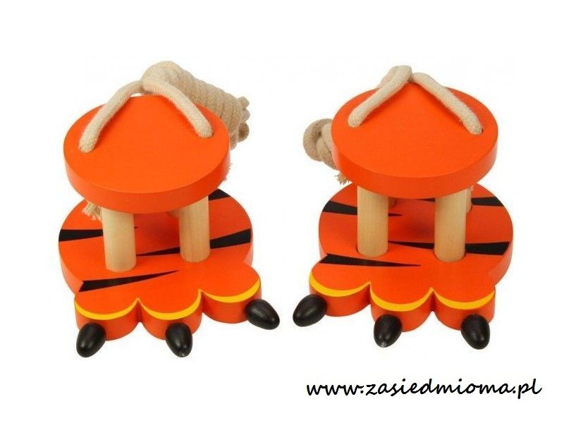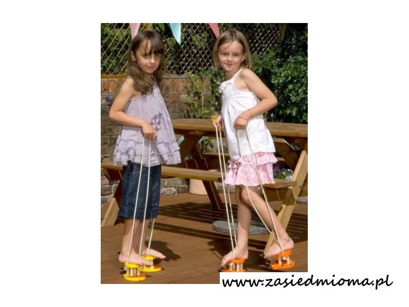 Zasada działania jest prosta. Należy postawić nóżkę na górnej platformie stópki. Do rąk bierzemy sznurki odpowiednio do prawej z prawej stópki i to samo z lewą. Aby się przemieszczać należy jednocześnie podnieść nogę i pociągnąć za sznurki, aby stópka uniosła się wraz z nogą. Szczudła to świetna zabawa.
