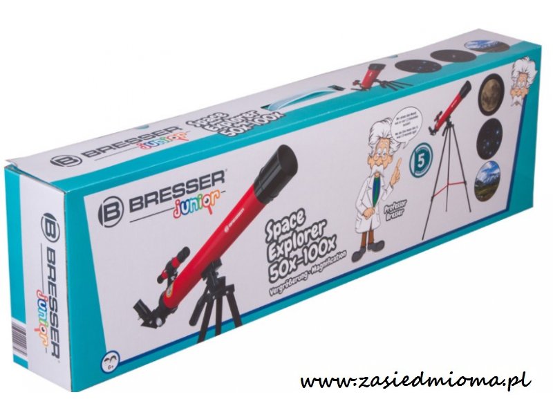 Teleskop Bresser Junior Space Explorer 45/600 AZ zaprojektowany został specjalnie z myślą o młodych badaczach kosmosu. To wspaniały przyrząd pozwalający postawić pierwsze kroki w świecie astronomii. Przyda się także do obserwacji przyrody – w zestawie znajdują się akcesoria potrzebne do prowadzenia obserwacji naziemnych. Z uwagi na fakt, że uzyskiwany obraz ma prawidłową orientację, teleskop może z powodzeniem zastąpić lunetę o 100-krotnym powiększeniu.