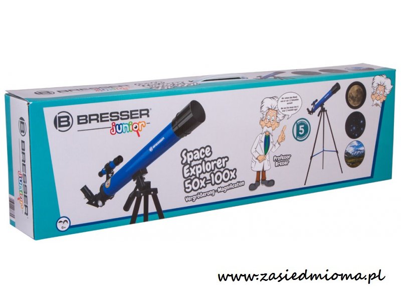 Teleskop Bresser Junior Space Explorer 45/600 AZ zaprojektowany został specjalnie z myślą o młodych badaczach kosmosu. To wspaniały przyrząd pozwalający postawić pierwsze kroki w świecie astronomii. Przyda się także do obserwacji przyrody – w zestawie znajdują się akcesoria potrzebne do prowadzenia obserwacji naziemnych. Z uwagi na fakt, że uzyskiwany obraz ma prawidłową orientację, teleskop może z powodzeniem zastąpić lunetę o 100-krotnym powiększeniu.