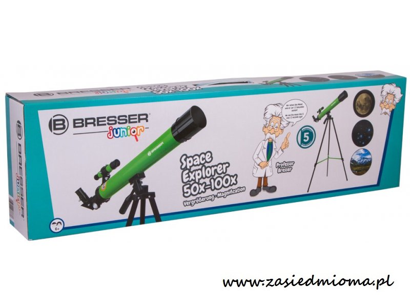 Teleskop Bresser Junior Space Explorer 45/600 AZ zaprojektowany został specjalnie z myślą o młodych badaczach kosmosu. To wspaniały przyrząd pozwalający postawić pierwsze kroki w świecie astronomii. Przyda się także do obserwacji przyrody – w zestawie znajdują się akcesoria potrzebne do prowadzenia obserwacji naziemnych. Z uwagi na fakt, że uzyskiwany obraz ma prawidłową orientację, teleskop może z powodzeniem zastąpić lunetę o 100-krotnym powiększeniu.