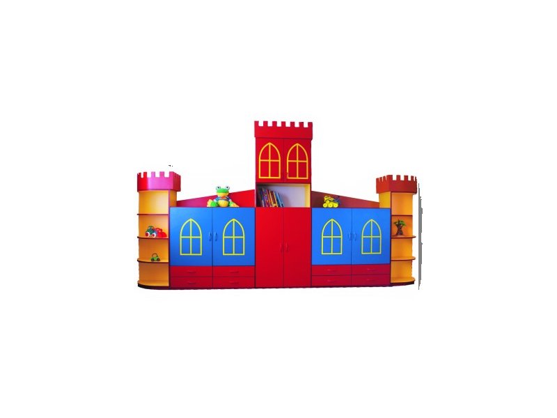 Zestaw Zamek – to 8 szafek z półkami, 8 szuflad oraz dwie baszty z półeczkami. Istnieje możliwość zmiany kolorów płyty i obrzeży.