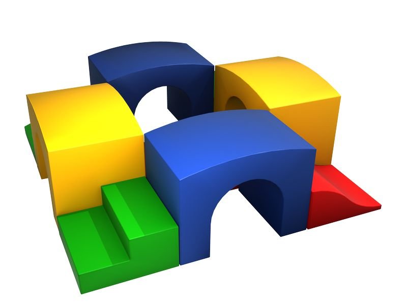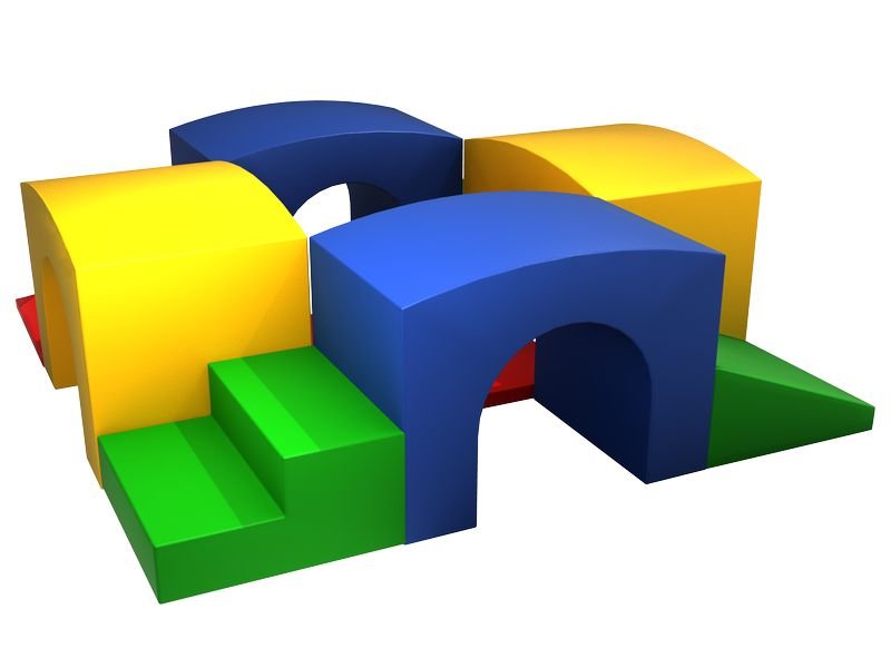 Psychomotoryczne miękkie klocki stymulują różny ruch dziecka, zmuszając je do prostych ćwiczeń fizycznych: wdrapywania się, przechodzenia przez tunele, budowania fantazyjnych budowli.